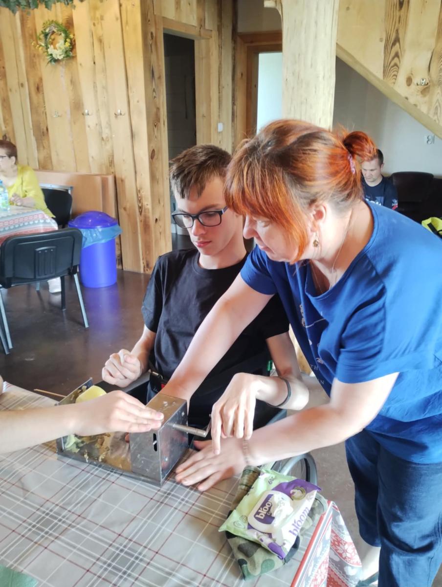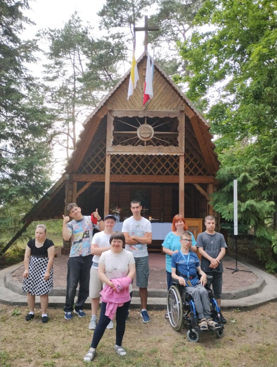Ośmiodniowy pobyt 18 podopiecznych Stowarzyszenia Przyjaciół Zespołu Szkół Specjalnych „Wśród Nas” w Ośrodku Szkoleniowo – Wypoczynkowym w Malinówce Wielkiej koło Ełku w dniach 29.06 do 6.07.2025 dobiegł końca. Pogoda była dla nas łaskawa, sprzyjała spacerom, wycieczkom przyrodniczym i rekreacyjnym oraz kąpielom słonecznym i wodnym. Miejsce pobytu wspaniałe. Ośrodek położony w lesie , nad Jeziorem Łaśmiady z własną plażą, pomostem i ratownikiem dbającym o bezpieczeństwo. W czasie pobytu mieliśmy spotkanie z edukatorem Nadleśnictwa Ełk panem Andrzejem Pielą, który przybliżył nam życie zwierząt i ptaków zamieszkujących na tych terenach, florę i faunę oraz nazwy i cechy szczególne drzew rosnących w lesie i ich znaczenie w życiu człowieka. W środę przy wspólnym ognisku gościliśmy naszych rodziców, co sprzyjało wzajemnej integracji. Jeden dzień spędziliśmy w pobliskim Ełku, gdzie bawiliśmy się klockami w „Kolei na klocki” oraz uczyliśmy się podstaw robotyki. Zwiedziliśmy miasto Ełk i obejrzeliśmy wystawę prac plastycznych w Ełckim Centrum Kultury. Dużo czasu spędzaliśmy w świetlicy na kreatywnych zajęciach rękodzielniczych, plastycznych oraz sesjach zdjęciowych w różnych miejscach i sytuacjach. Mieliśmy też okazję zintegrować się z karatekami, którzy mieli akurat swój obóz treningowy w tym samym ośrodku co my. Wzięliśmy udział w jednym z ich treningów, poznając wschodnią sztukę walki, jaką jest karate – to było niesamowite przeżycie. Ostatni dzień to wycieczka do Grądzek Ełckich i wizyta w „Zakątku u Ewy”. Tam mieliśmy kontakt ze zwierzętami oraz robiliśmy mydełko glicerynowe i mieliśmy warsztaty kulinarne – samodzielnie wykonując zakręcone frytki. Podsumowaniem było wspólne ognisko. Pobyt był wspaniały i już wszyscy wyrazili swoją gotowość na wspólny wyjazd za rok. A gdzie – czas pokaże. Przedsięwzięcie zostało zrealizowane w ramach zadania publicznego współfinansowanego przez Gminę Miasto Augustów „Wakacje w Malinówce”.