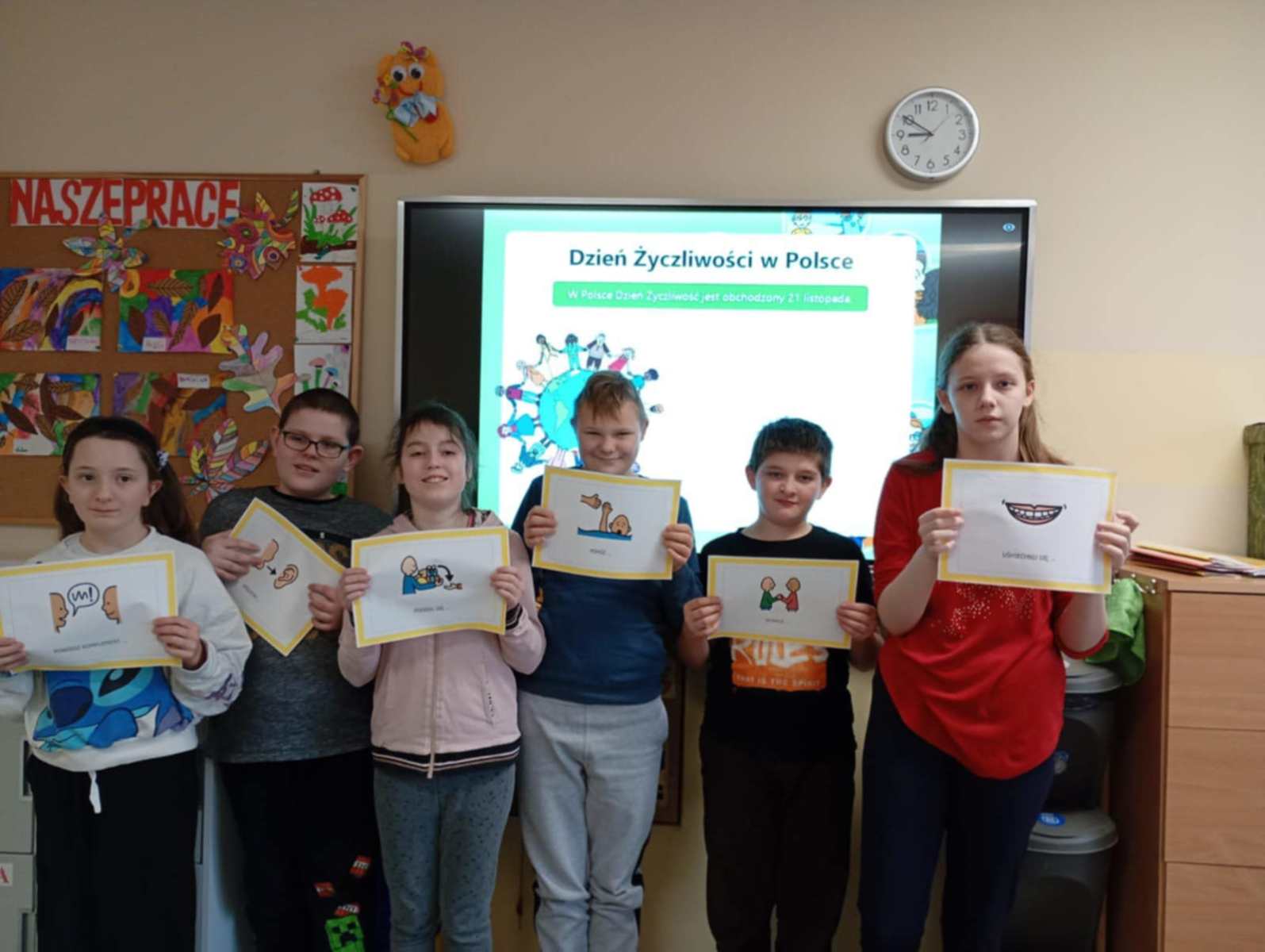 21 listopada w naszej szkole świętowaliśmy Światowy Dzień Życzliwości i Pozdrowień. Uczniowie podczas zajęć rozmawiali o tym, jak wielką moc mają dobre słowa i drobne gesty. Już wiemy, że życzliwość jest językiem, który wszyscy potrafimy zrozumieć.  Niech życzliwość będzie z nami każdego dnia!