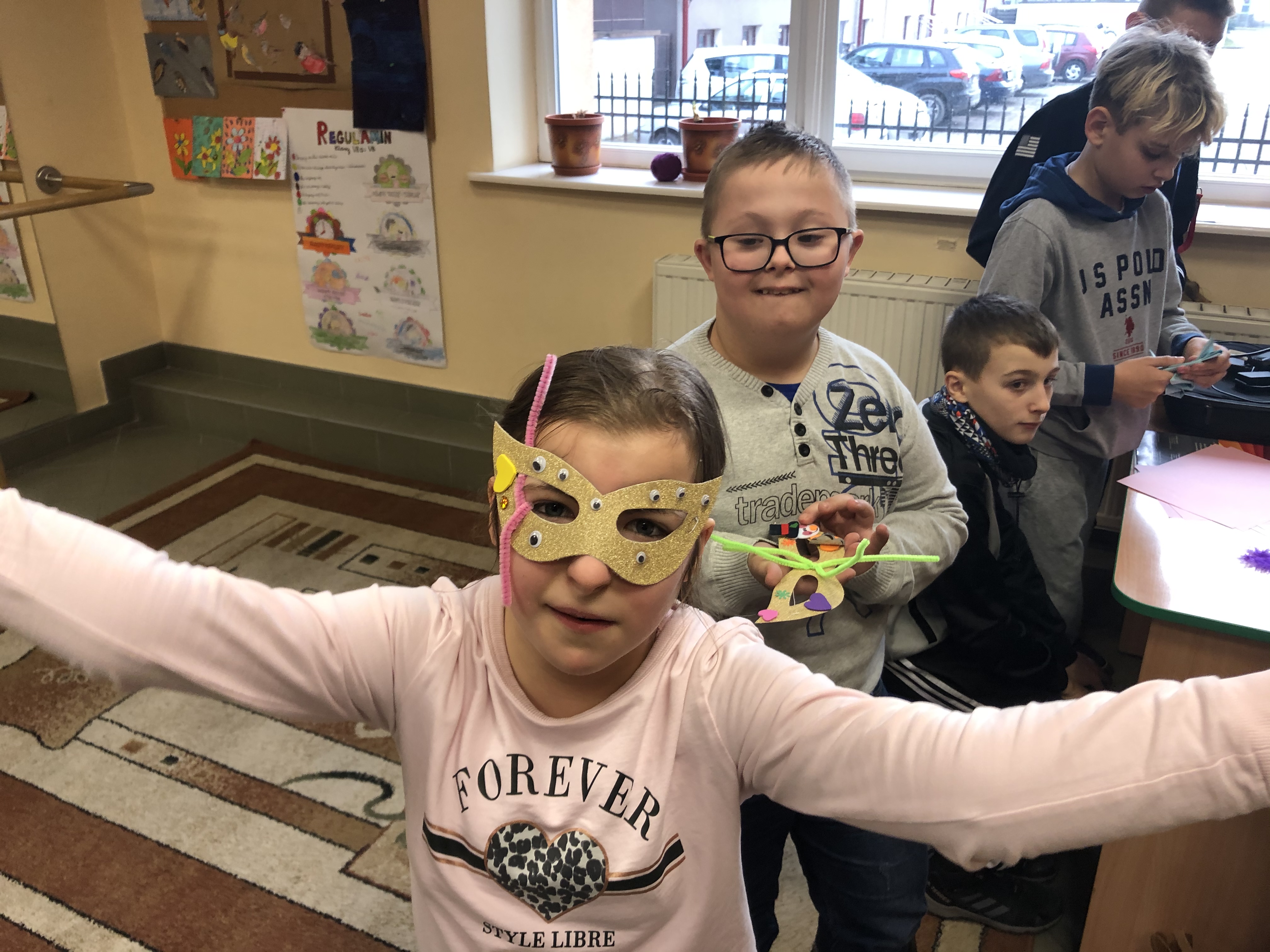 Kolejny raz odwiedzili nas uczniowie Szkoły Społecznej. Tym razem przyszli do nas uczniowie klasy 6. Nasi koledzy sami przygotowali wspaniałe zabawy integracyjne, razem śpiewaliśmy i tańczyliśmy. Wspólnie wykonywaliśmy maski karnawałowe, oraz origami. Już nie możemy się doczekać kolejnych spotkań.
