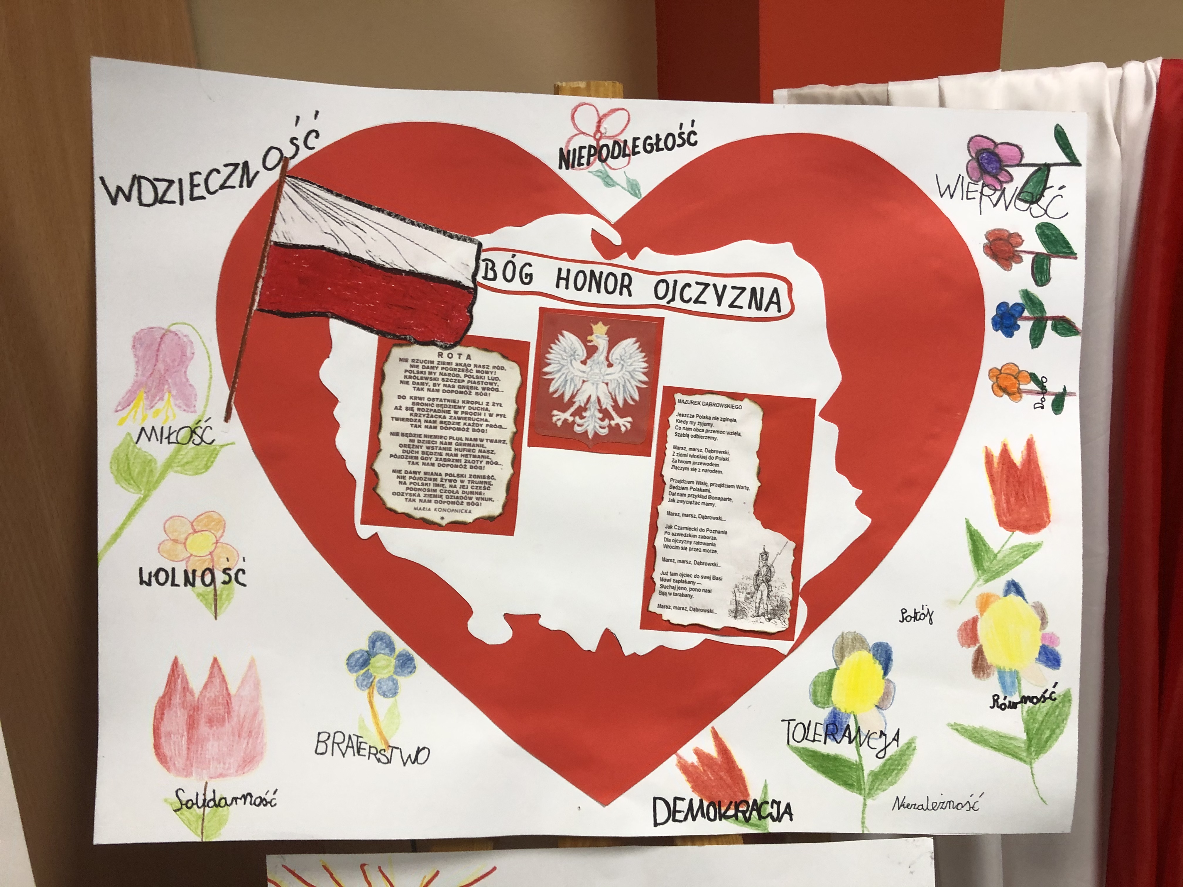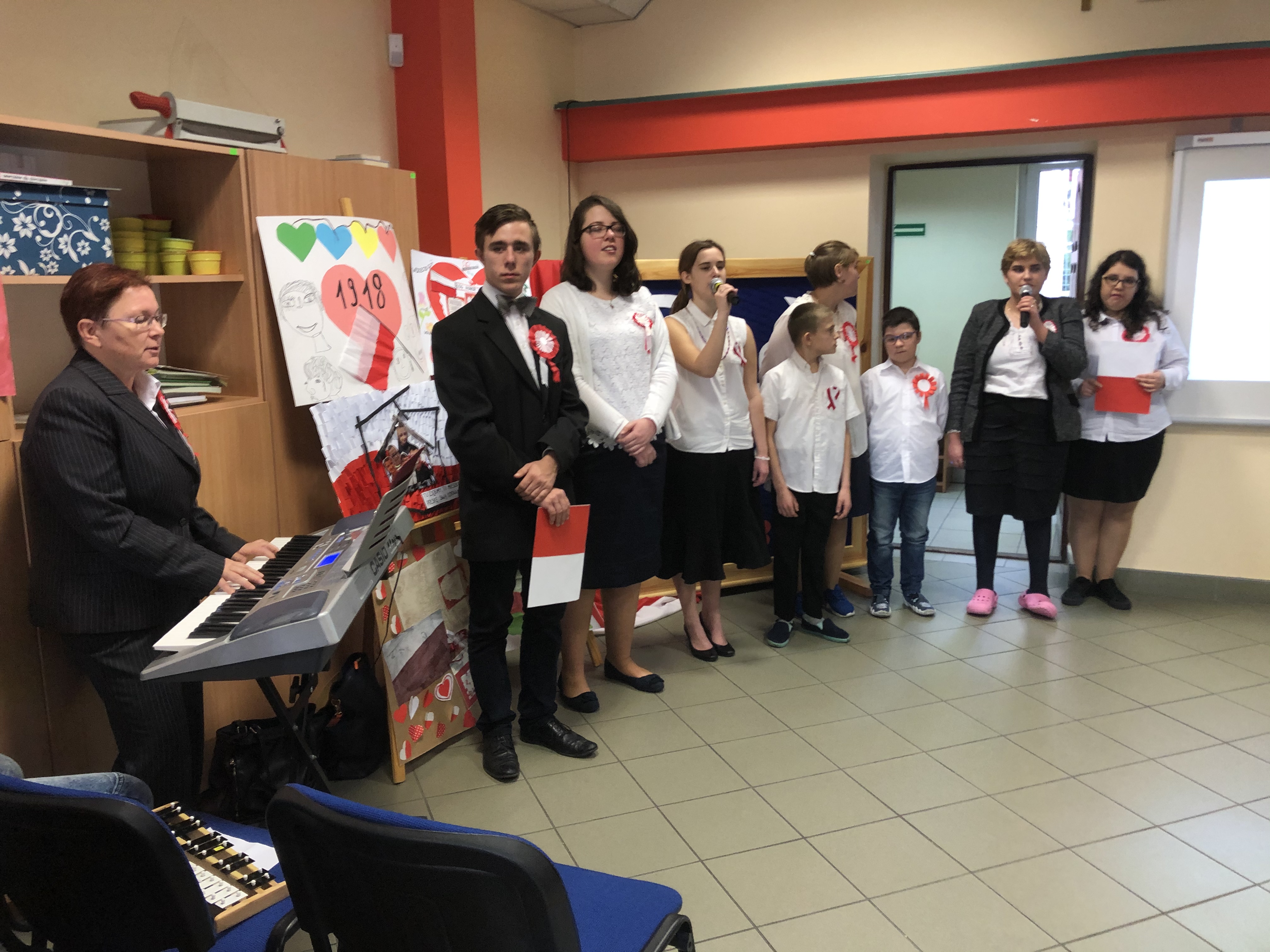 101 lat temu 11 listopada 2018r. po 123 latach niewoli Polska stała się wolnym i niezależnym krajem. Podczas części artystycznej, której towarzyszyła prezentacja multimedialna, uczniowie przypomnieli nie tylko fakty historyczne ale rozśpiewali publiczność najpopularniejszymi legionowymi piosenkami. Próbowali opisać, co to znaczy być patriotą w codziennym życiu. Nastąpiło również rozstrzygnięcie konkursy plastycznego „Nasza Niepodległa”, którego prace pięknie dekorowały salę podczas uroczystości. Apel zakończył się wspólnym odśpiewaniem Roty.