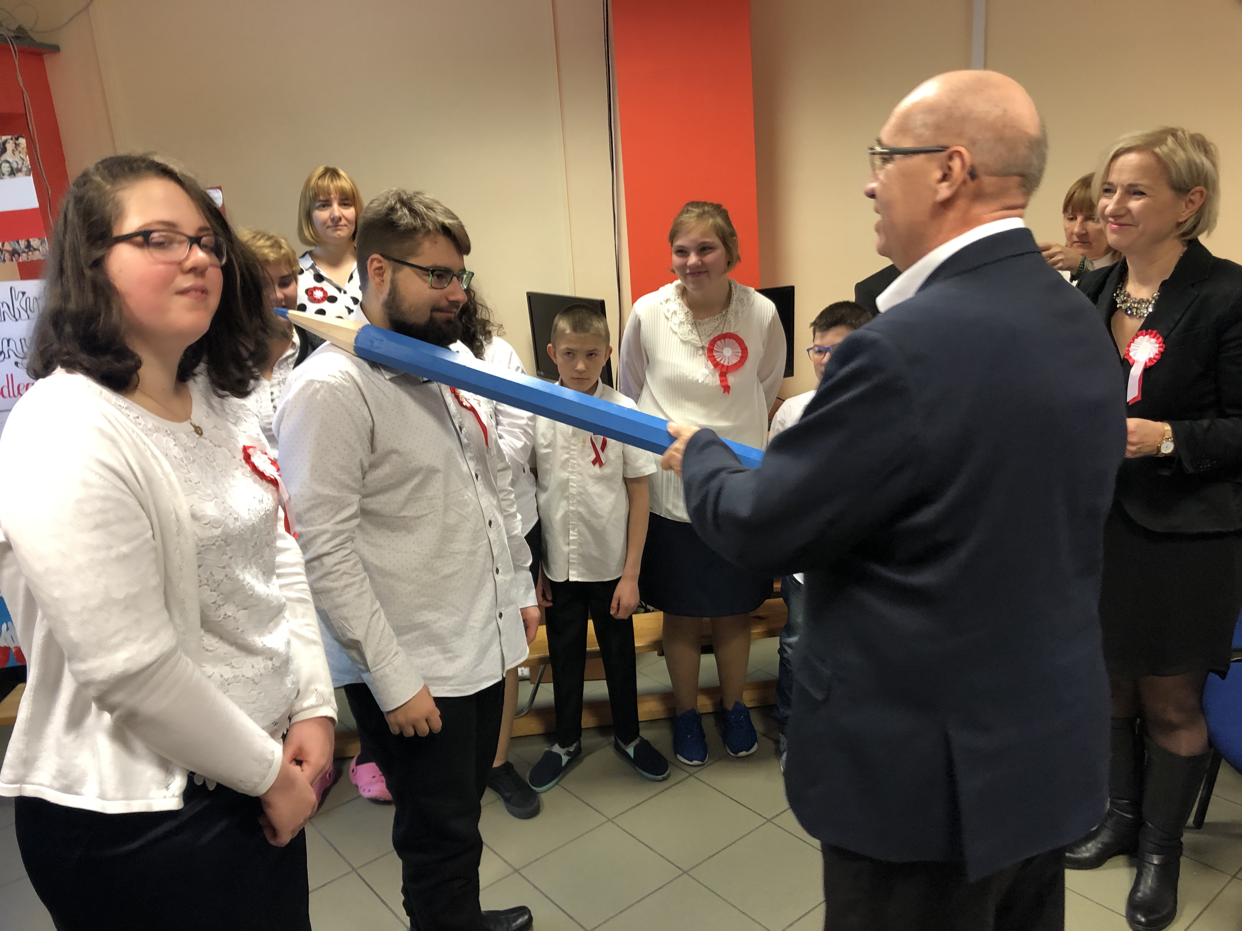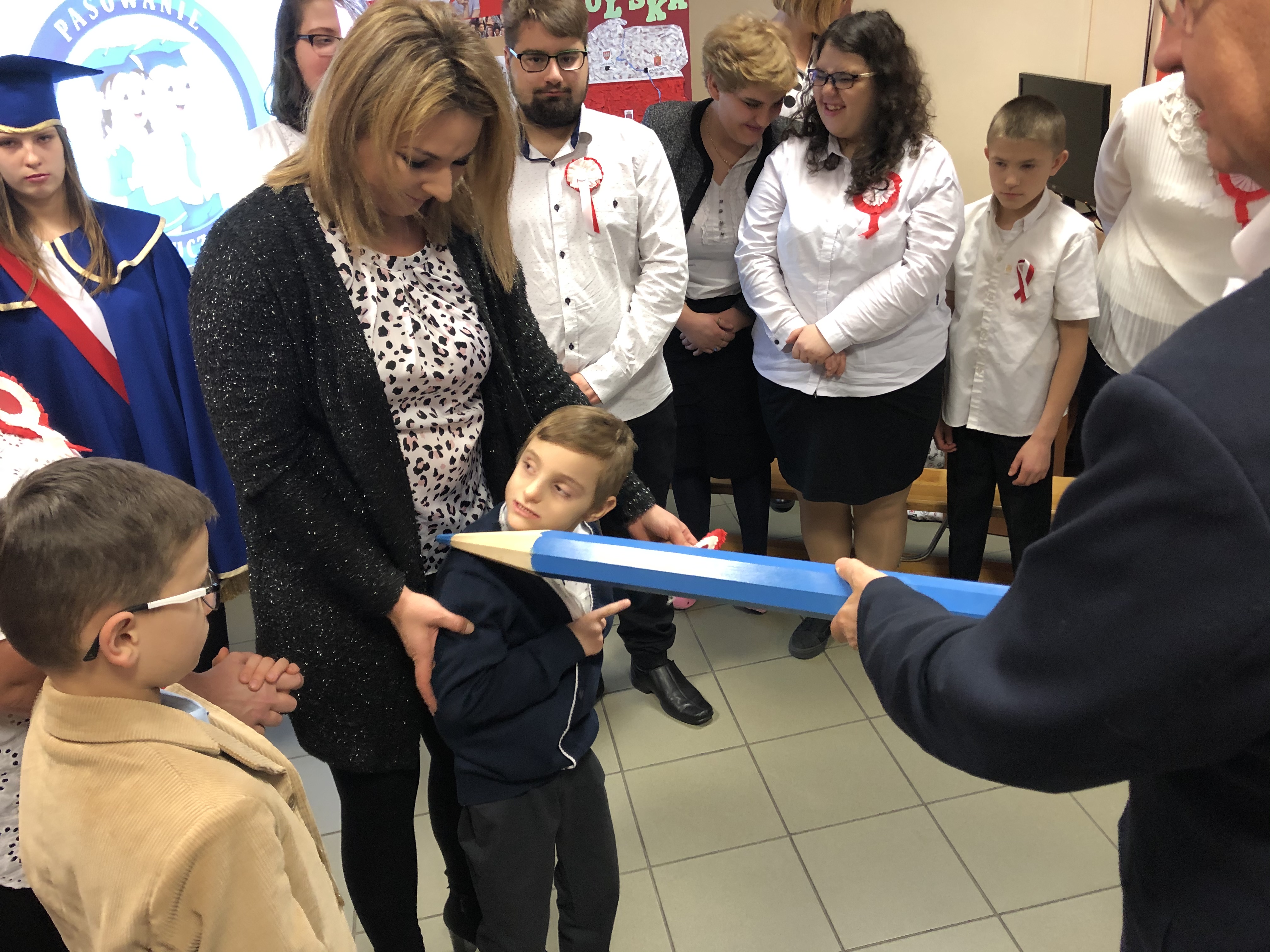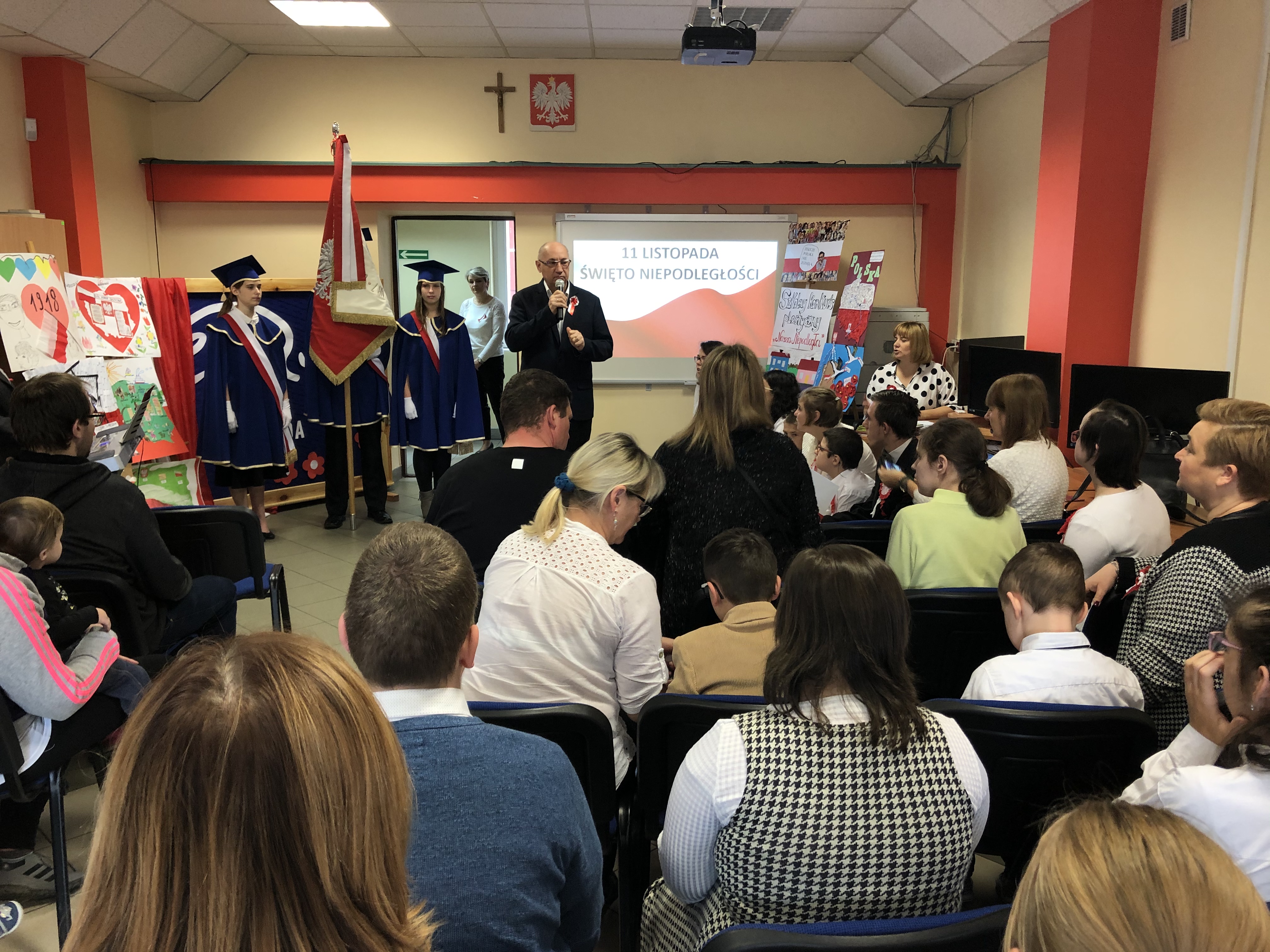 Z okazji Narodowego Święta Niepodległości dnia12 listopada 2019 r. w naszej szkole odbył się uroczysty apel. Tradycją jest, że w tym dniu odbywa się ślubowanie nowych uczniów naszej szkoły. Dzisiaj podczas ślubowania i pasowania na ucznia do społeczności szkolnej przyjętych zostało pięcioro uczniów: