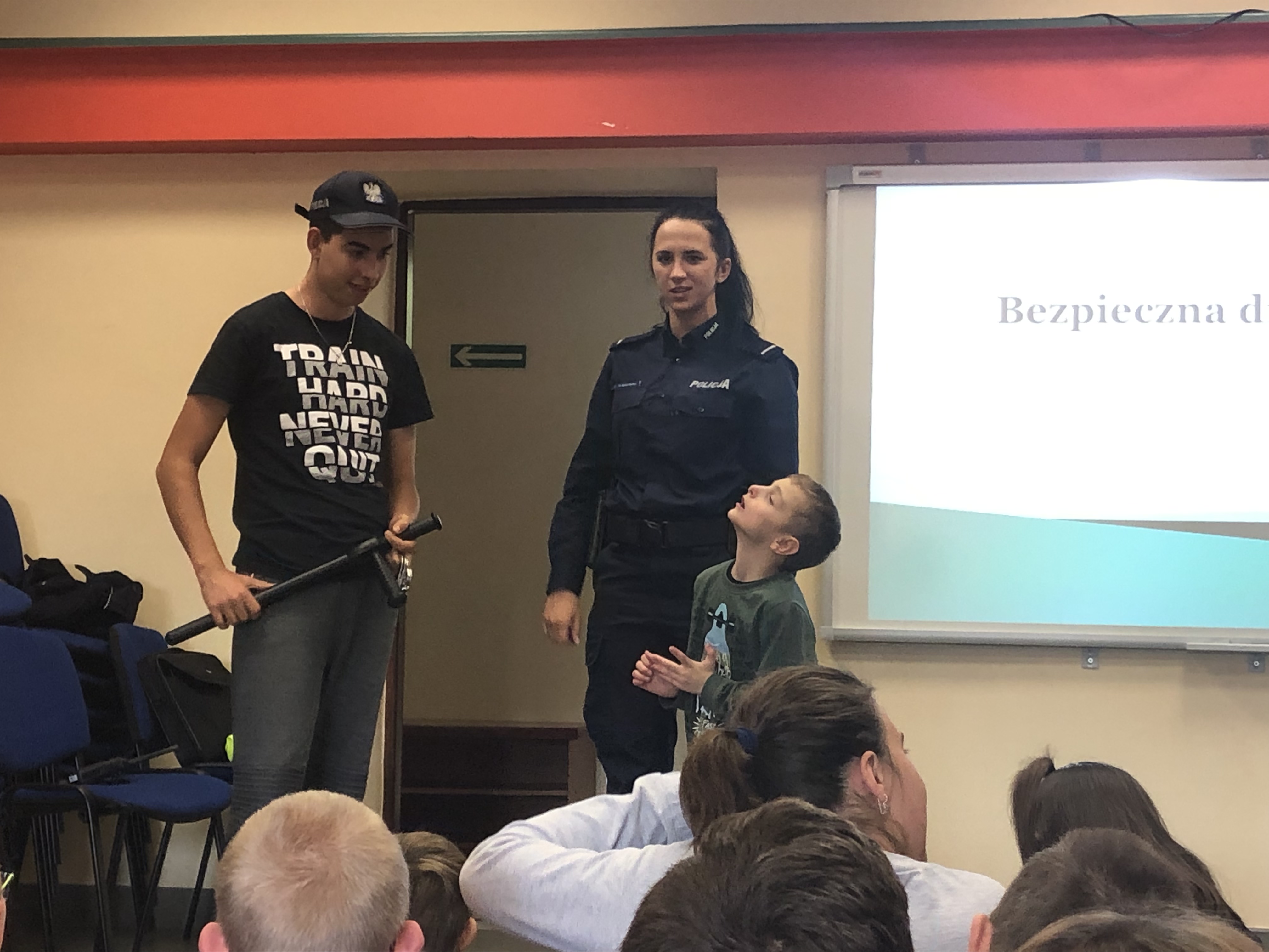 26 września odbyły się zajęcia otwarte na temat: „Bezpiecznej drogi do szkoły”. Na początku Pani Elżbieta Chilicka z Panią Agnieszką Szczygło omówiły prezentację multimedialną oraz przeprowadziły krótki konkurs ze znajomości znaków drogowych. Gościem specjalnym była funkcjonariuszka Powiatowej Komendy Policji w Augustowie – Pani Kinga Muczyńska. Policjantka przypomniała uczniom zasady bezpiecznego poruszania się pieszych w ruchu drogowym wyjaśniając przy tym jak wielkie ma to znaczenie dla naszego bezpieczeństwa. Omówiła również zasady zachowania się podczas ataku psa. W przyjaznej i miłej atmosferze uczniowie mieli okazję odświeżyć już posiadaną wiedzę oraz poznać nowe zagadnienia. Ponadto miały możliwość bliższego poznania specyfiki pracy Policjanta oraz wyposażenia, którym dysponuje na służbie. Podsumowaniem spotkania był krótki film.