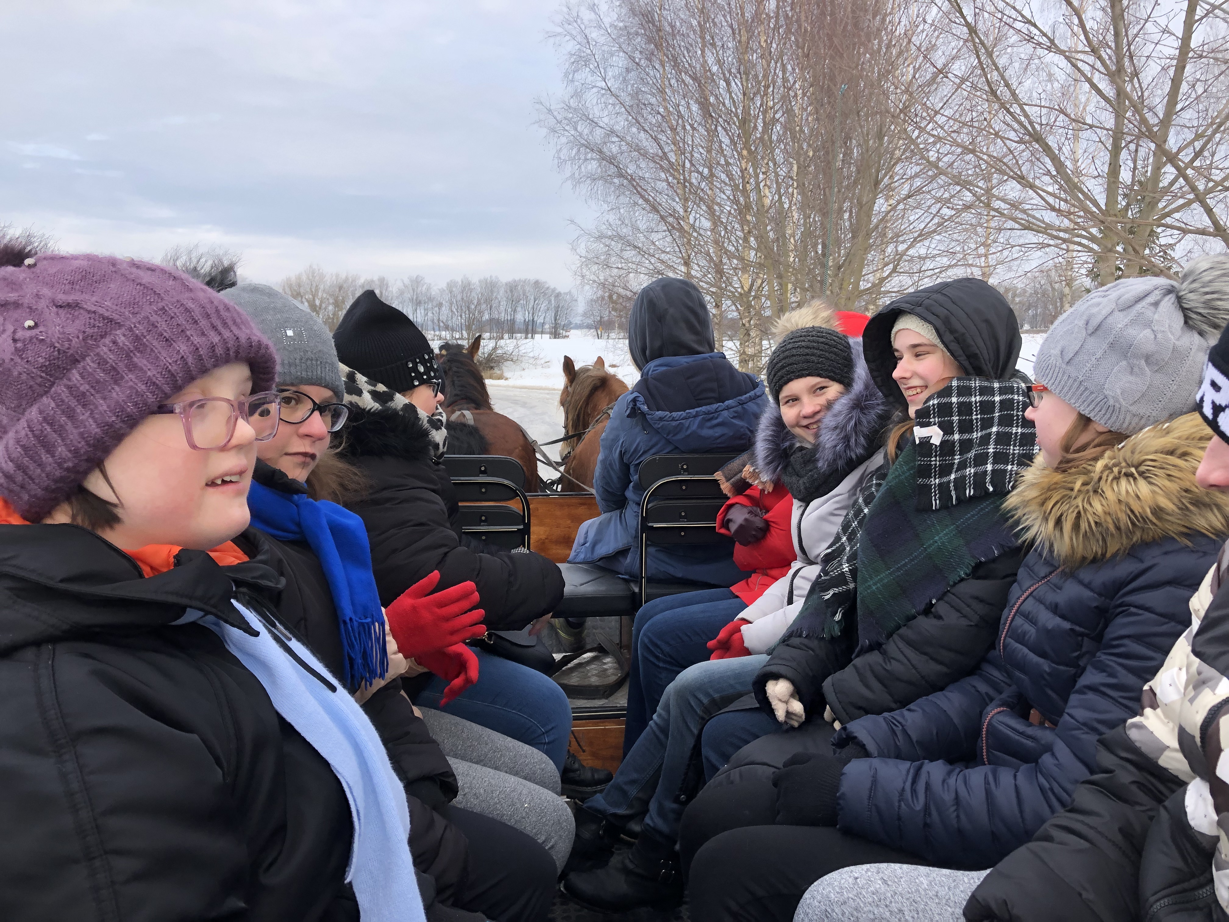 I tak było 7 lutego 2019 roku na ośnieżonej trasie w Żarnowie Pierwszym nieopodal Augustowa. Tego dnia wszyscy uczniowie wraz z nauczycielami uczestniczyli w kuligu. Byliśmy tak liczną grupą, że wiozły nas trzy zaprzęgi. Nadmieniamy, że obsługę ogniska, z pełnym oddaniem i zaangażowaniem, zapewnił dyrektor naszej szkoły pan Roman Krzyżopolski. Zadbał o ogień bijący z ogniska, też i pyszne, wzorowo wypieczone kiełbaski. Ciepłą herbatą poczęstowała gospodyni Stadniny. To wydarzenie obfitowało także w inne, radosne przeżycia. Zwiedzaliśmy stajnie, bawiliśmy się na śniegu i na placu zabaw. Wsparcie finansowe otrzymaliśmy od Stowarzyszenia „Wśród Nas”. Dziękujemy bardzo.