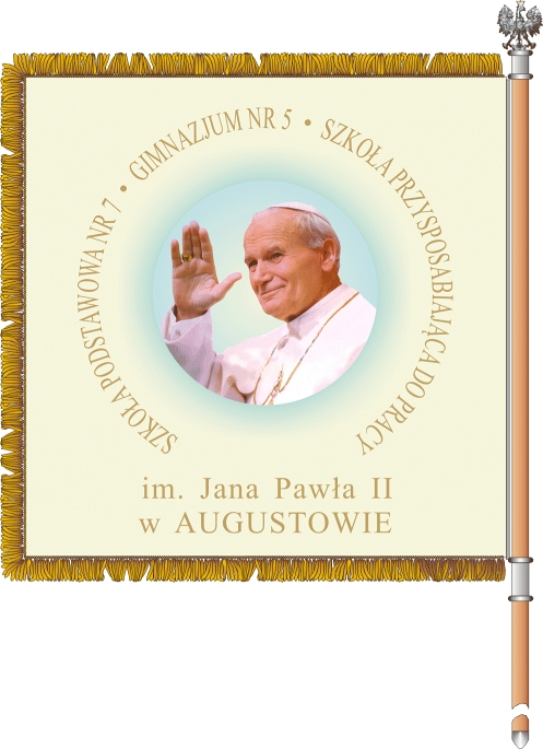 W roku szkolnym 2010 nasza szkoła otrzymała imię Jana Pawła II i prawo posiadania sztandaru. Co roku organizujemy wiele uroczystości związanych z patronem. Najważniejszą jest październikowe Święto Szkoły związane z Dniem Papieskim. Cyklicznie organizowane są szkolne konkursy recytatorskie i plastyczne. Poczet sztandarowy reprezentuje szkołę w uroczystościach szkolnych i miejskich dotyczących świąt państwowych. Wyjeżdżamy też na coroczny Zjazd Podlaskiej Rodziny Szkół im. Jana Pawła II. Nasi uczniowie biorą udział w spływach kajakowych szlakiem Jana Pawła II, odwiedzają miejsca związane z wizytą Ojca Świętego na ziemi augustowskiej, wykonują gazetki tematyczne w klasach i dbają o „kącik papieski” na korytarzu szkoły. Na zajęciach pogłębiają wiadomości o życiu i nauczaniu patrona.