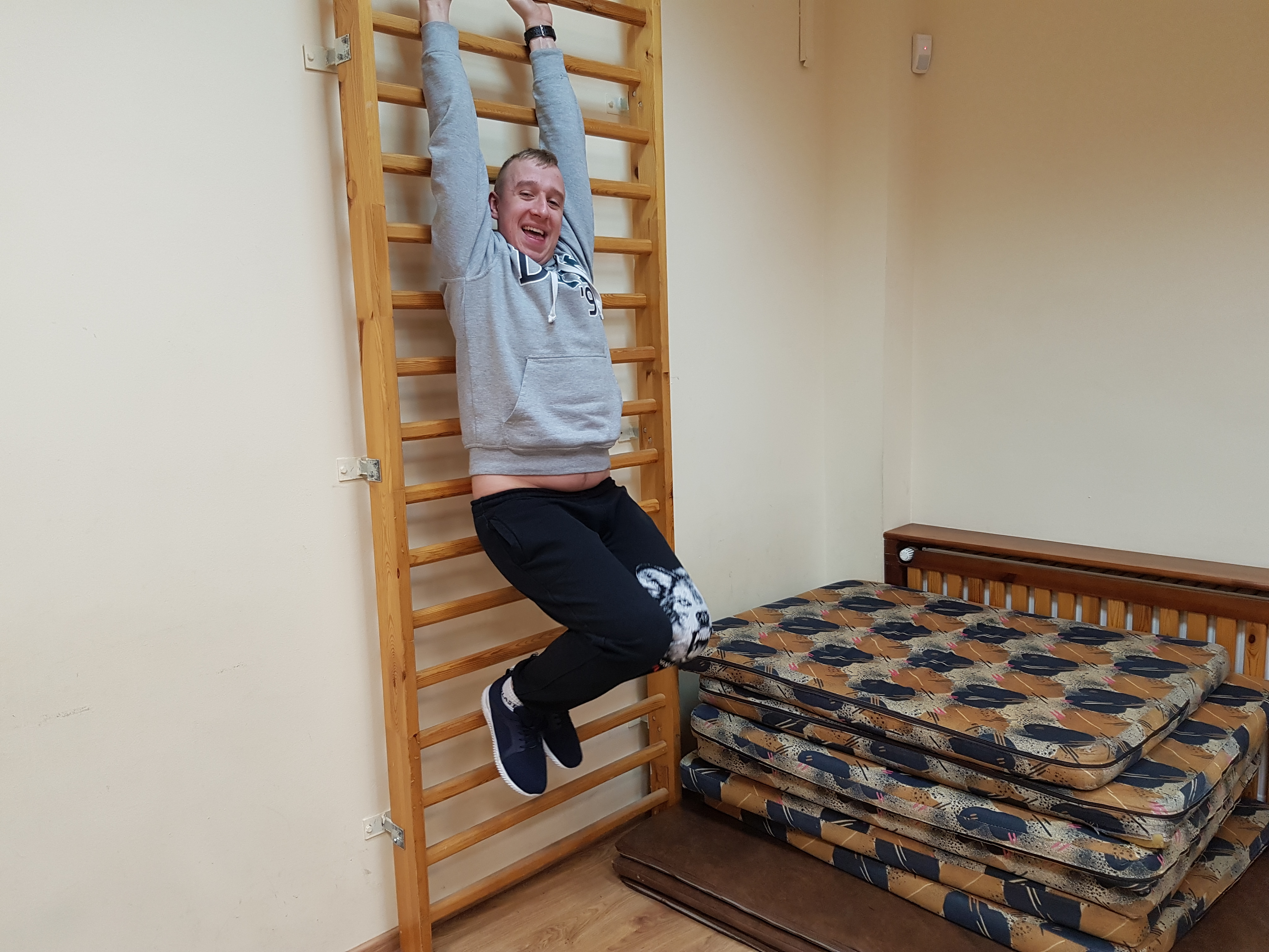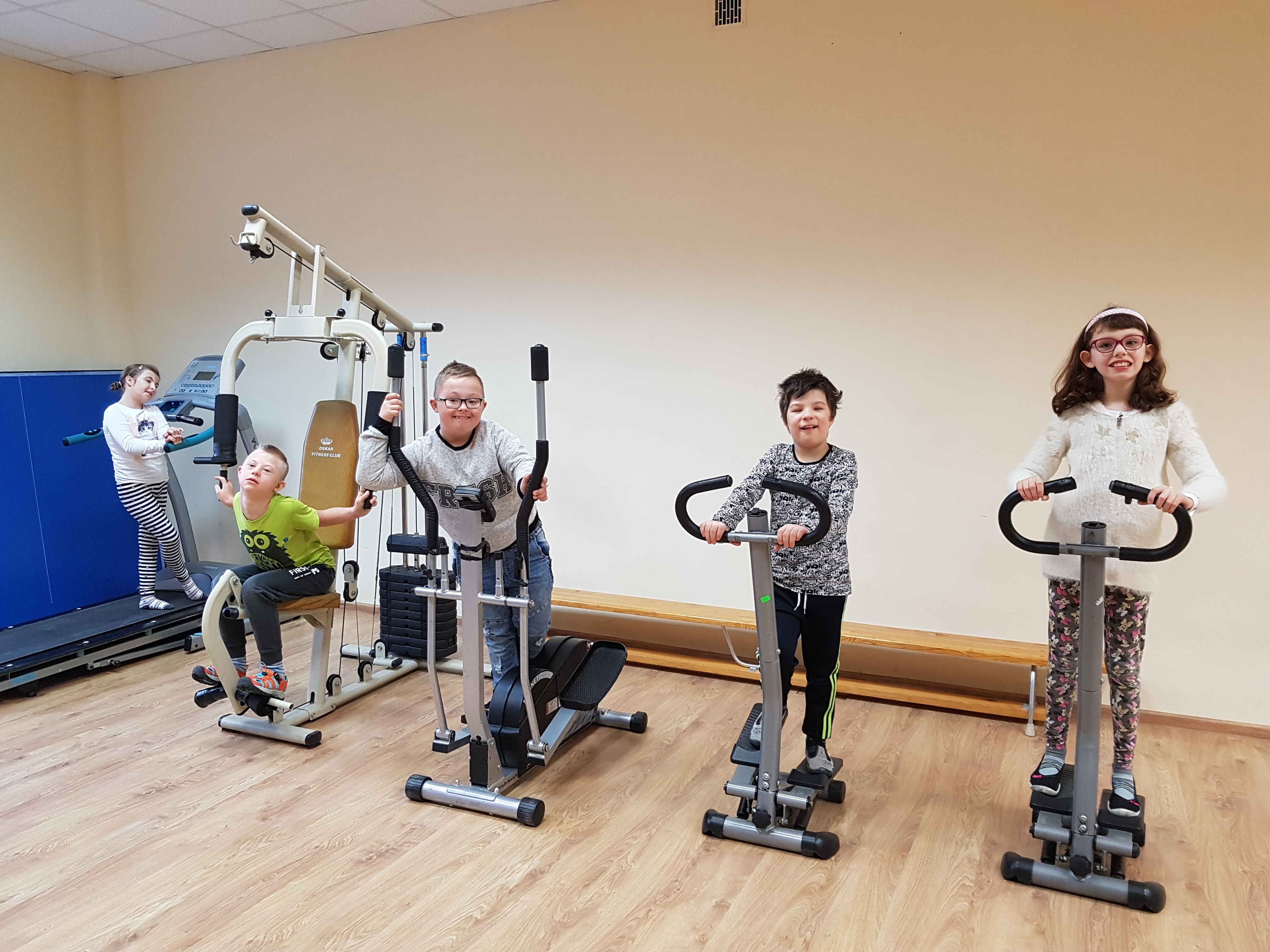 Do dyspozycji uczniów jest sala do terapii ruchowej wyposażona w specjalistyczny sprzęt.