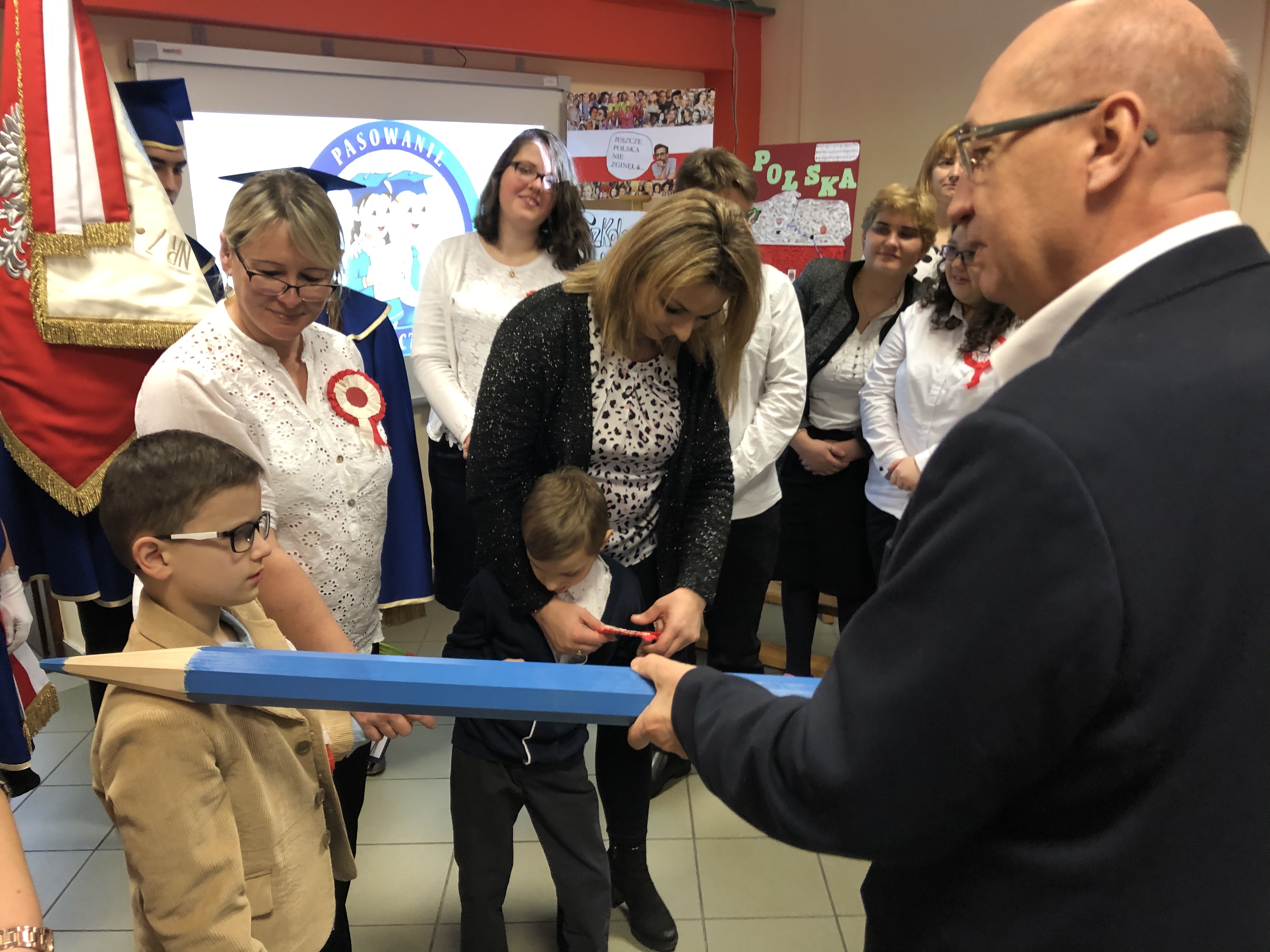 Z okazji Narodowego Święta Niepodległości dnia12 listopada 2019 r. w naszej szkole odbył się uroczysty apel. Tradycją jest, że w tym dniu odbywa się ślubowanie nowych uczniów naszej szkoły. Dzisiaj podczas ślubowania i pasowania na ucznia do społeczności szkolnej przyjętych zostało pięcioro uczniów: