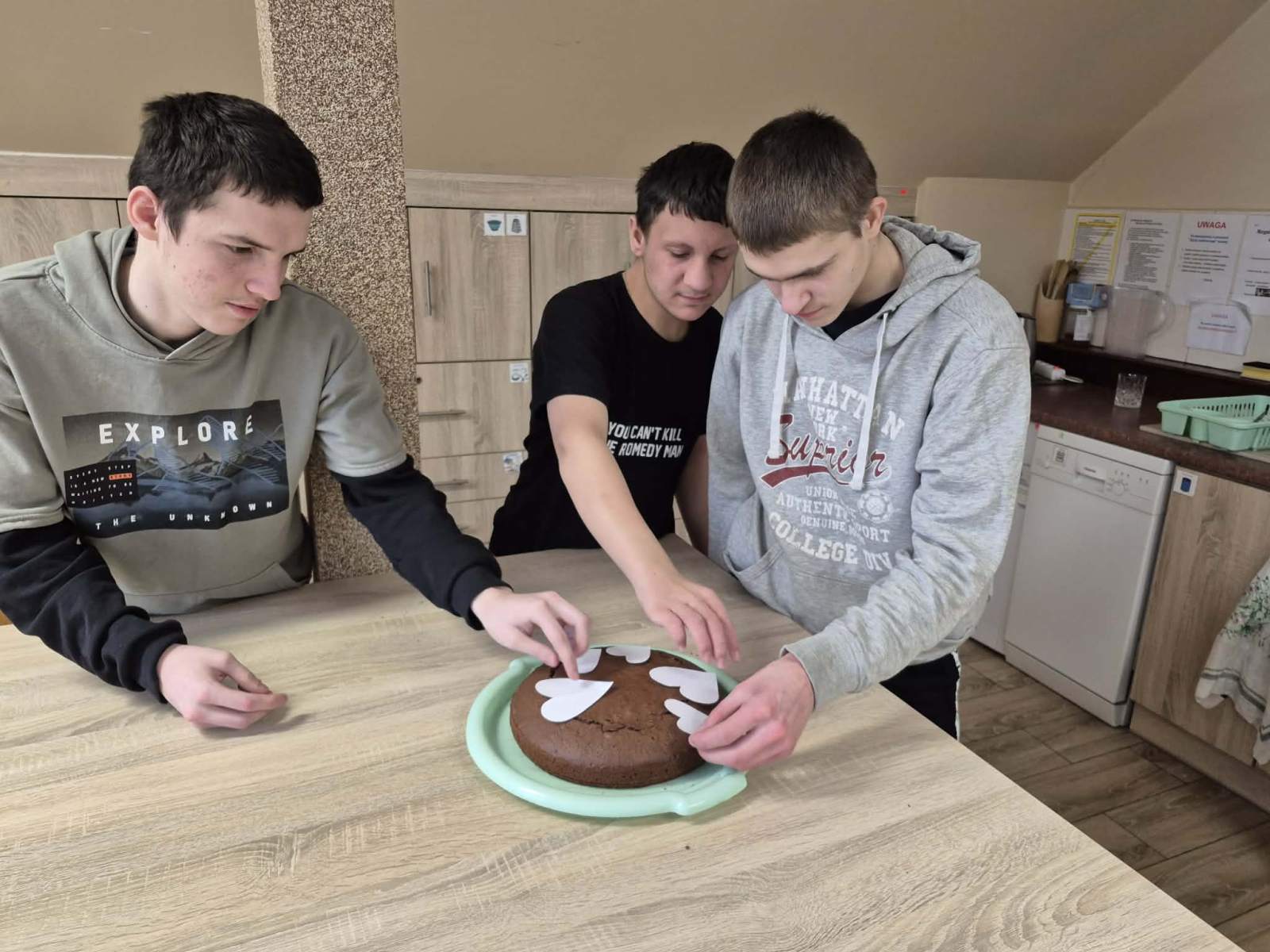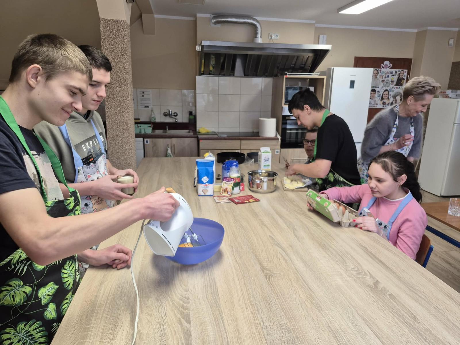 Podczas zajęć młodzież samodzielnie odmierzała składniki, przygotowywała masę, dbała o estetykę wykonania oraz porządek na stanowisku pracy. Była to doskonała okazja do rozwijania kompetencji praktycznych, ćwiczenia współpracy oraz wzmacniania poczucia sprawczości i samodzielności.